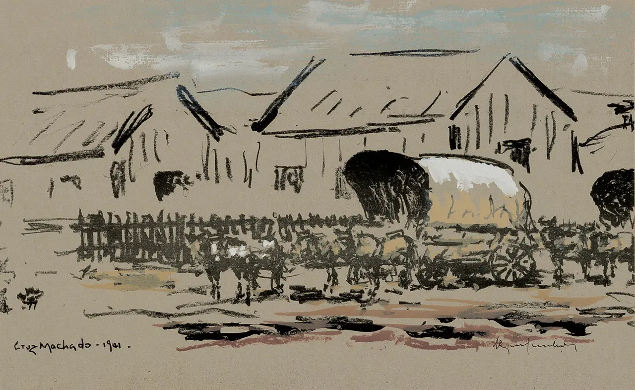 Essa pesada carroça coberta de lona atrelada a quatro cavalos era o correio de Cruz Machado. Ele fazia uma viagem por semana, partindo na segunda-feira de manhã para voltar somente na sexta-feira de noite.