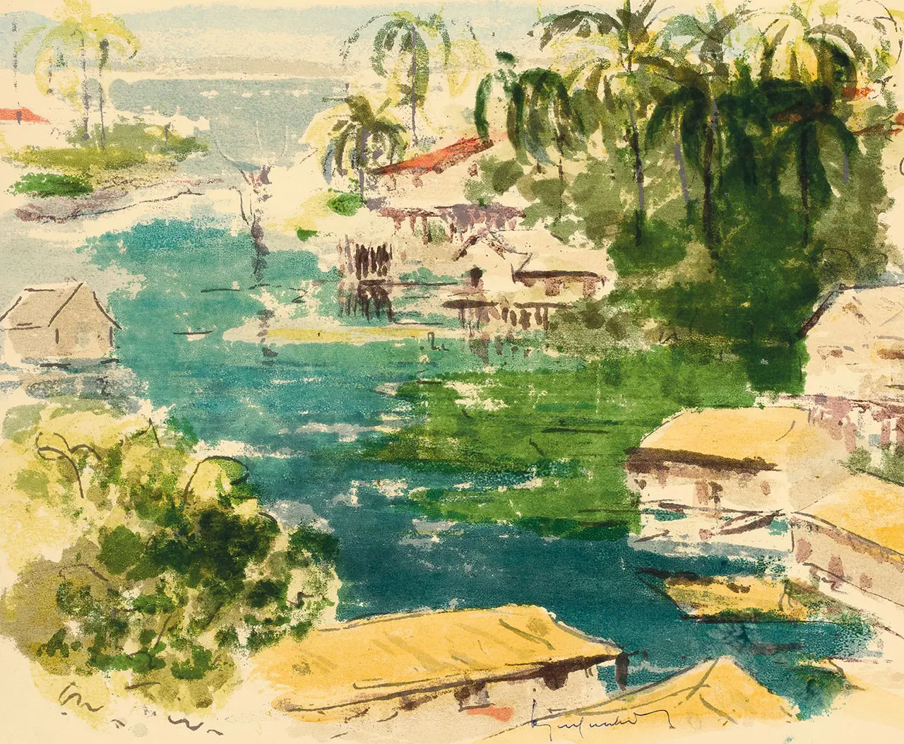 Não contente em acuar Manaus para dentro da floresta amazônica, o Rio Negro introduz seus igarapés¹ no próprio coração da cidade. Suas águas sombrias estendem-se às vezes entre ribanceiras de encostas verdejantes, às vezes se insinuam, quais ruelas aquáticas, por entre velhos muros. O igarapé São José penetra profundamente num anfiteatro de vegetação luxuriante: bananeiras, jaqueiras, mangueiras, cajueiros dominados pela cabeleira ondulante das palmeiras.