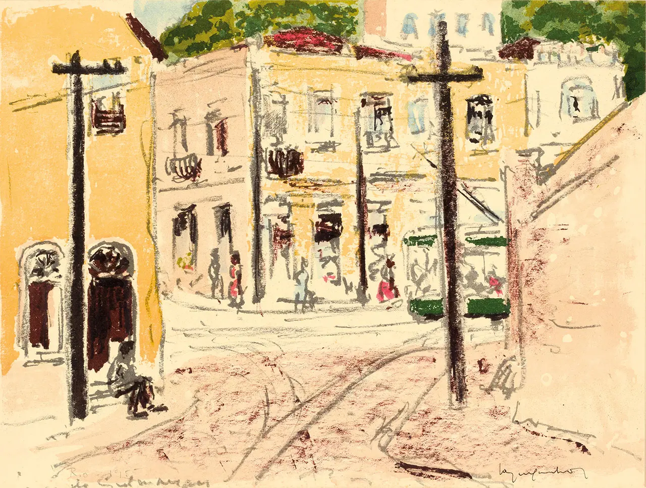 O bonde sobe pela ladeira. A barulheira do Rio vai diminuindo. O ar é mais leve. Passamos entre velhas casas baixas e soberbos palácios escondidos no meio de um verde exuberante. O bonde acorda com seus rangidos as pequenas ruas provincianas.